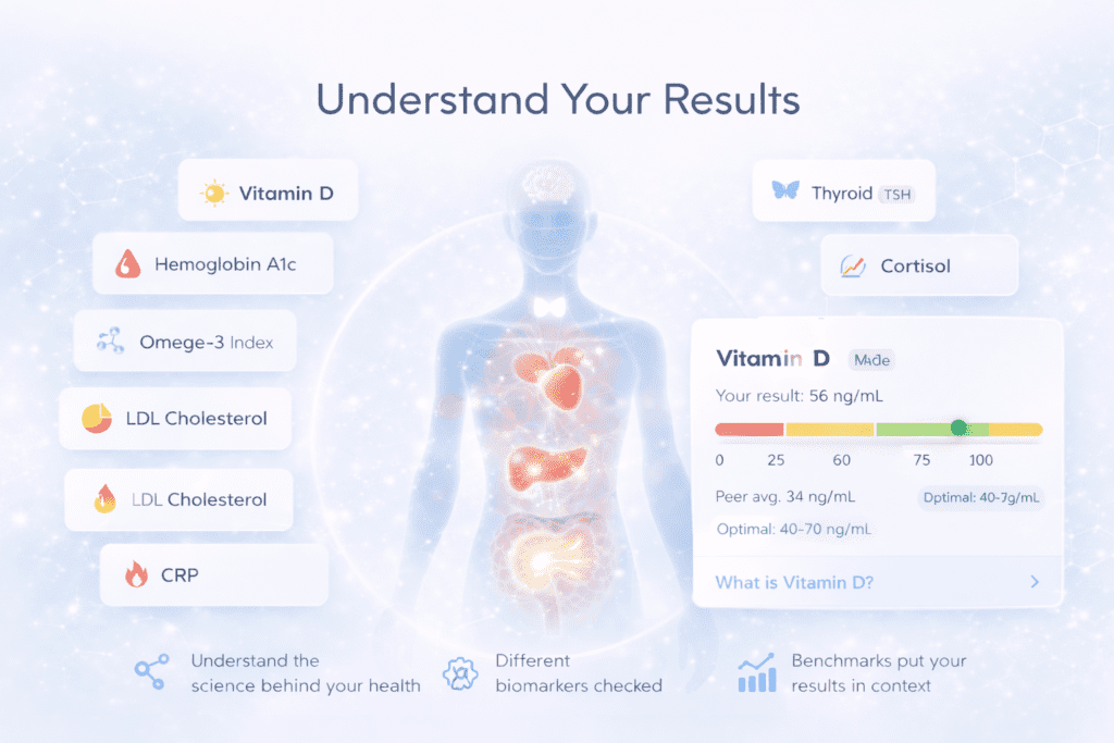 Regular testing allows you to monitor trends, measure improvements, and detect changes early. As your biomarkers change, your goals and action plan can evolve with them — helping you stay aligned with your long-term health.